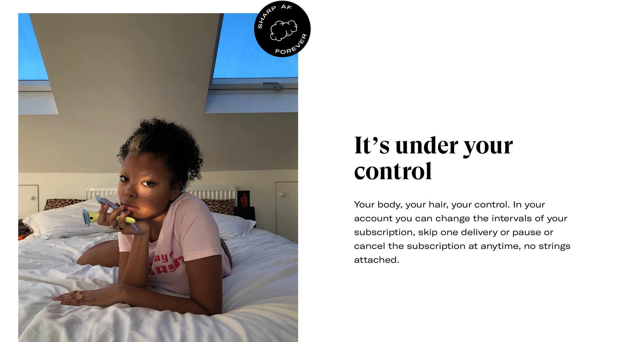 “Your body, your hair, your control” is their underlying brand ethos and messaging. Their imagery celebrates those who identify as women in whichever way they wish to show up and that is with body hair or without. The brand is not trying to shame body hair, force you to remove it but instead embraces the decisions you make from every standpoint.